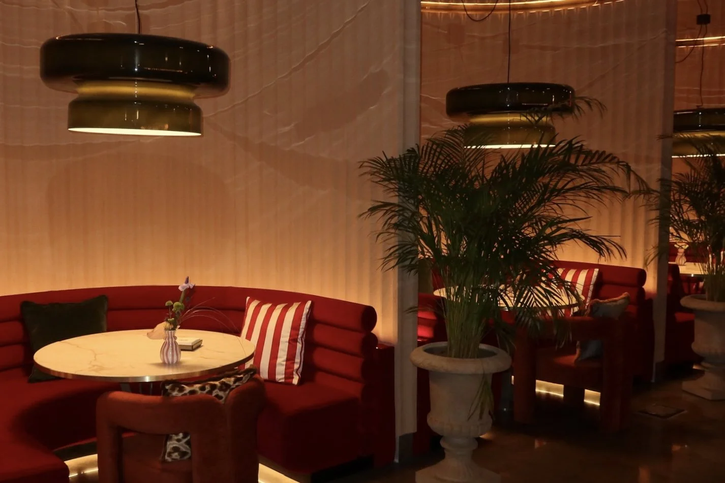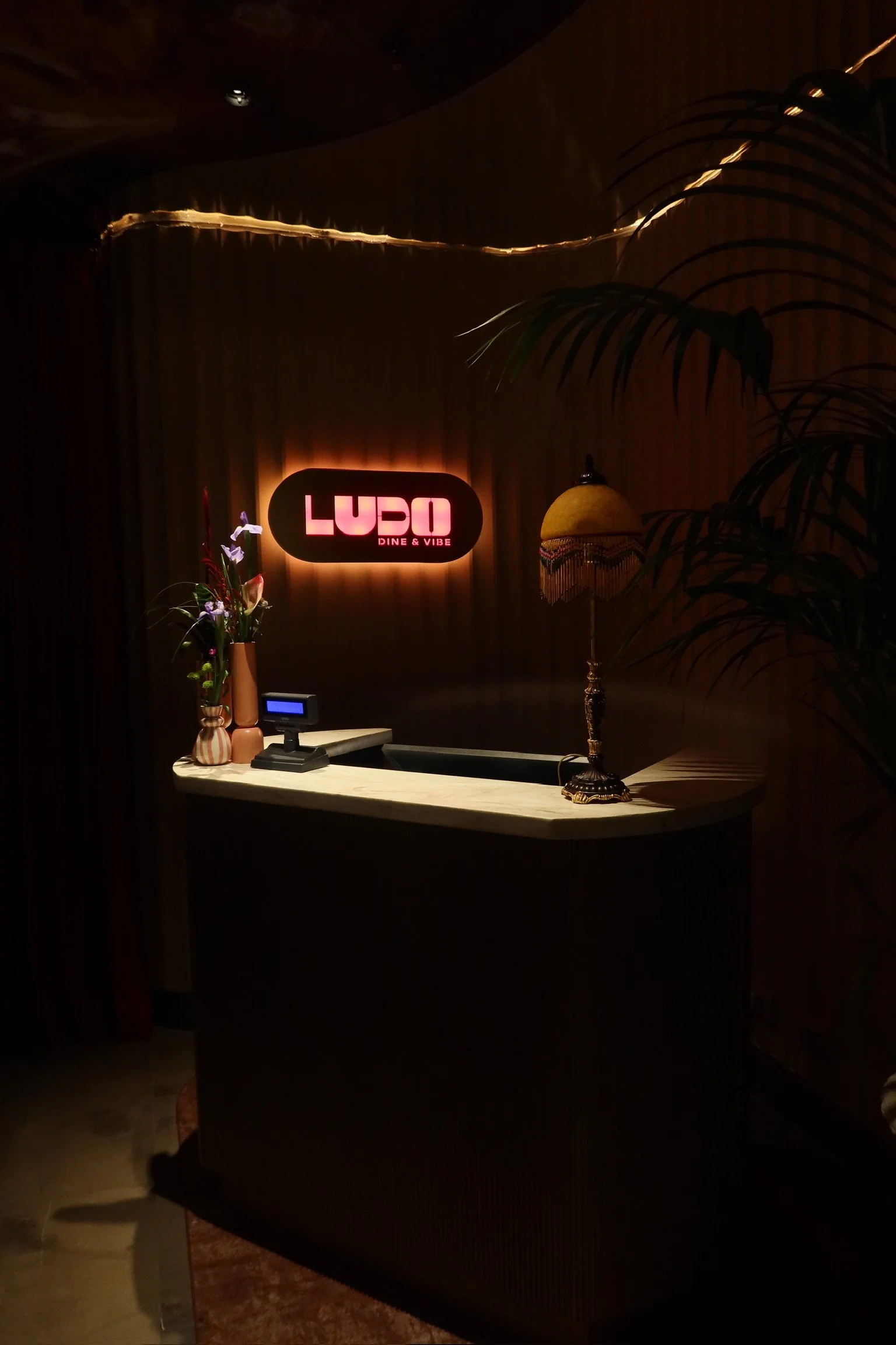 LUDO features Italian cuisine and signature cocktails, set within chic velvet interiors that glow beautifully after dark.
