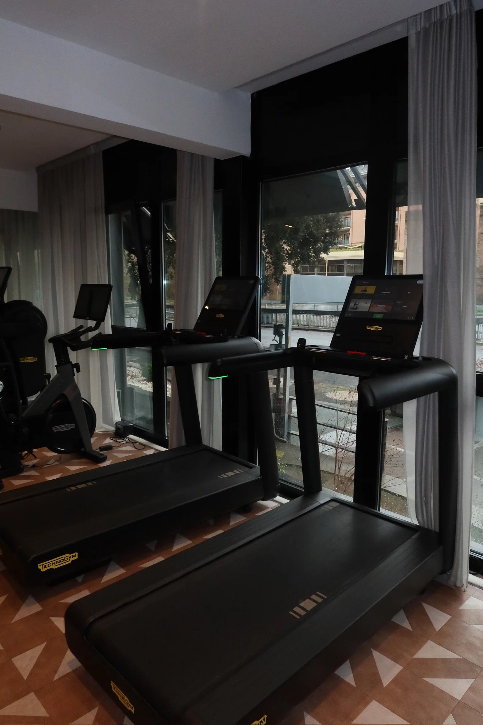 The gym is fully equipped with modern machines, making it the perfect reset after a day of eating pasta in Rome.