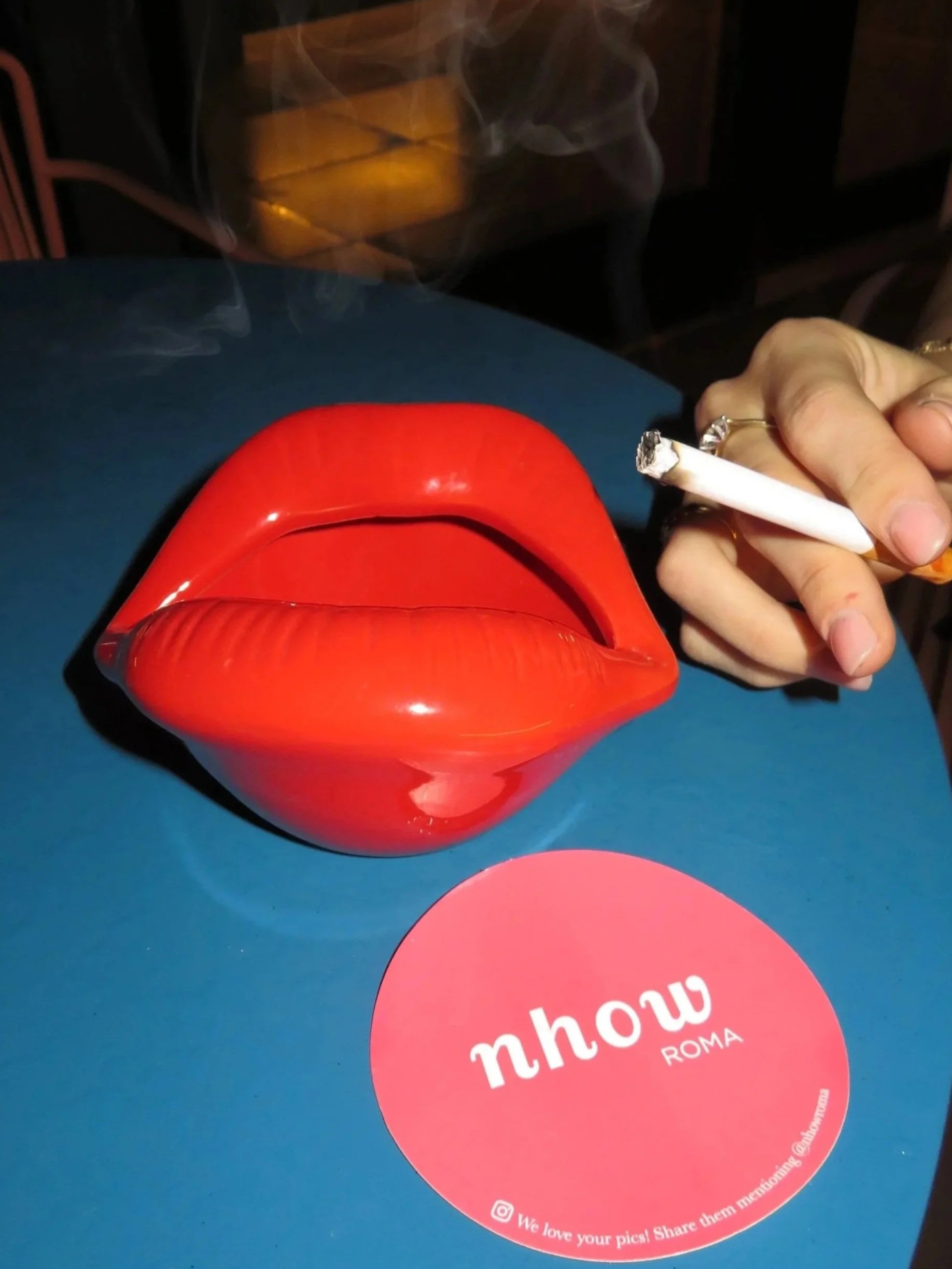 The terrace is easily one of the most memorable parts of the suite. Overlooking Villa Borghese, it offers a rare sense of calm, where the sounds of Rome feel present but never overwhelming. During the day (seen above), you watch life unfold in the park below. At night, the space shifts completely, illuminated by nhow’s signature attention to detail. Sculptural elements, like the iconic lip ashtray, feel playful yet chic, giving the terrace a clear sense of intention.